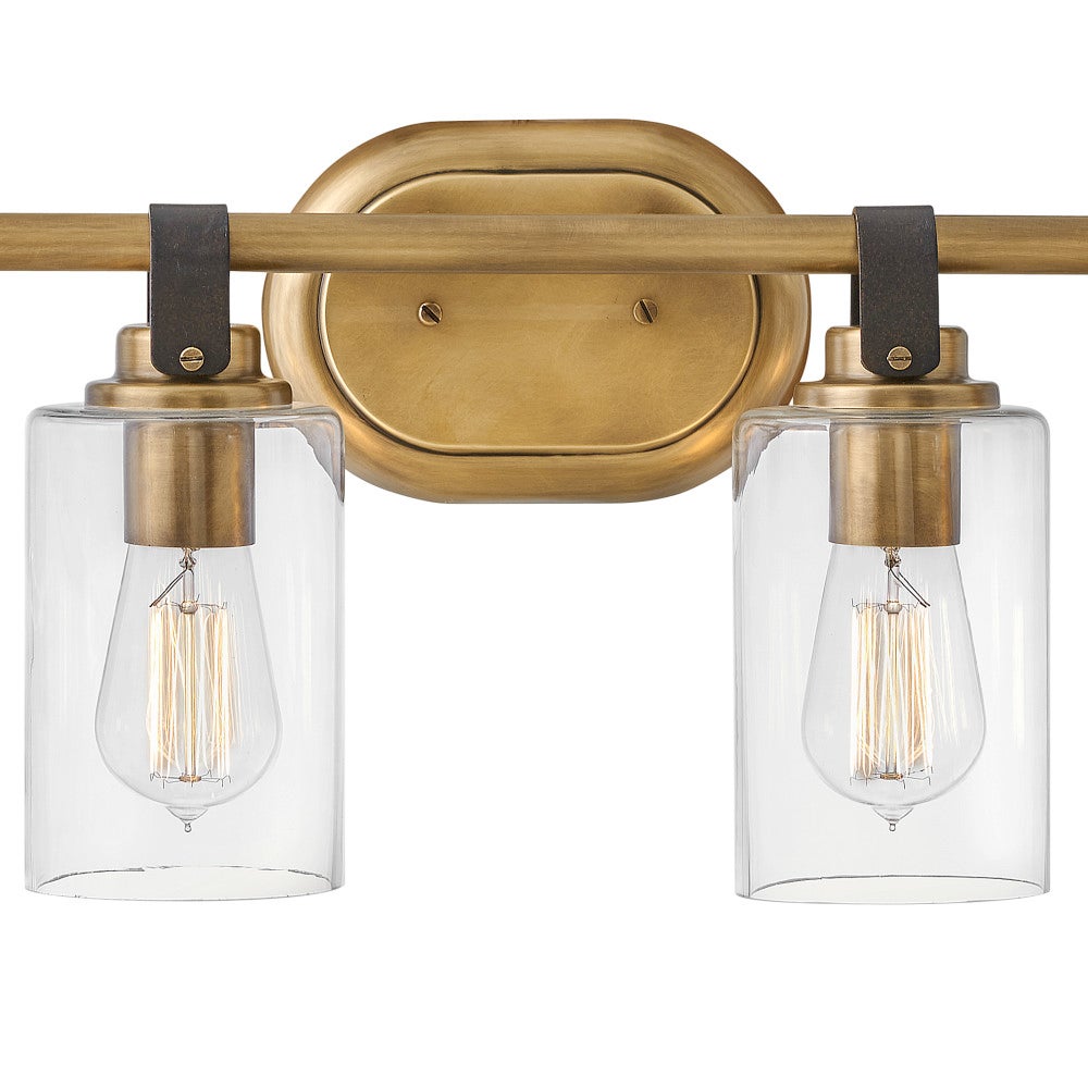 • Equestrian-style strap and clear glass shades merge warmth and clarity for a statement that still feels inviting
