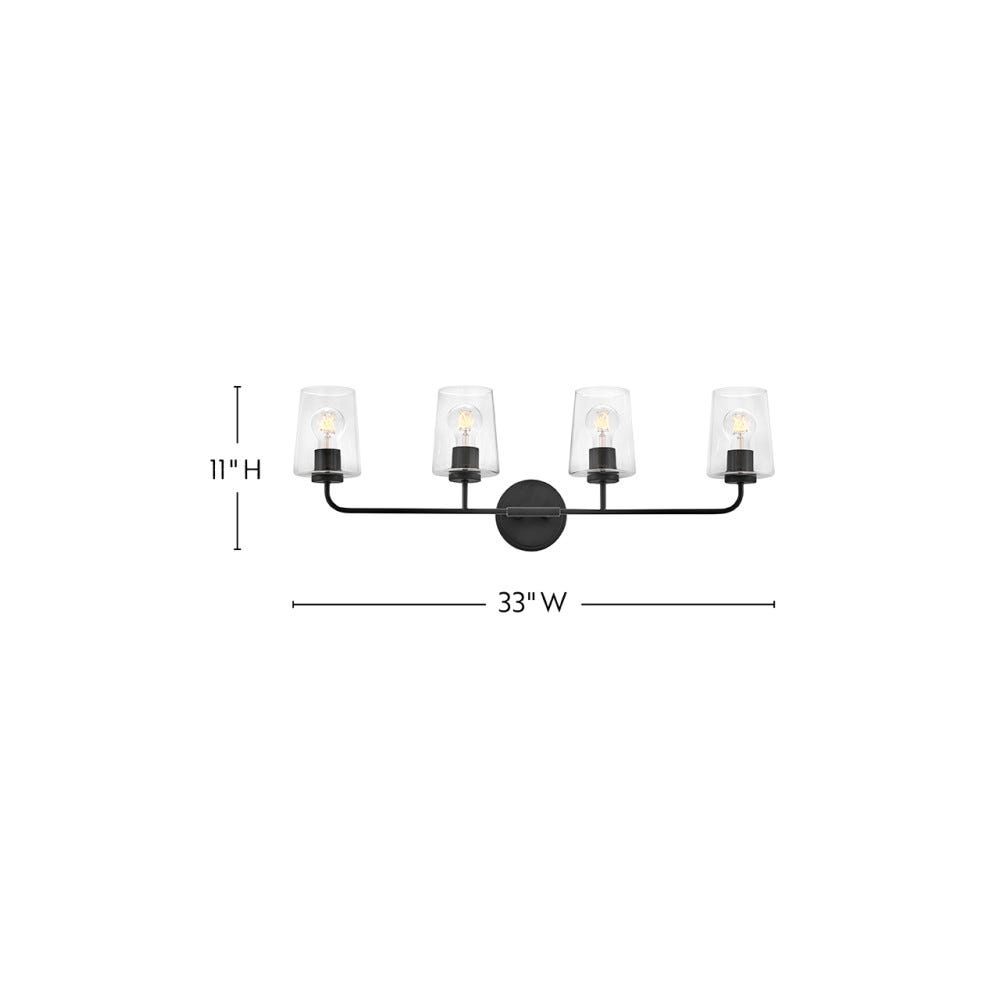 Quaan 33" Four Lights Large Vanity, Black / Clear Glass