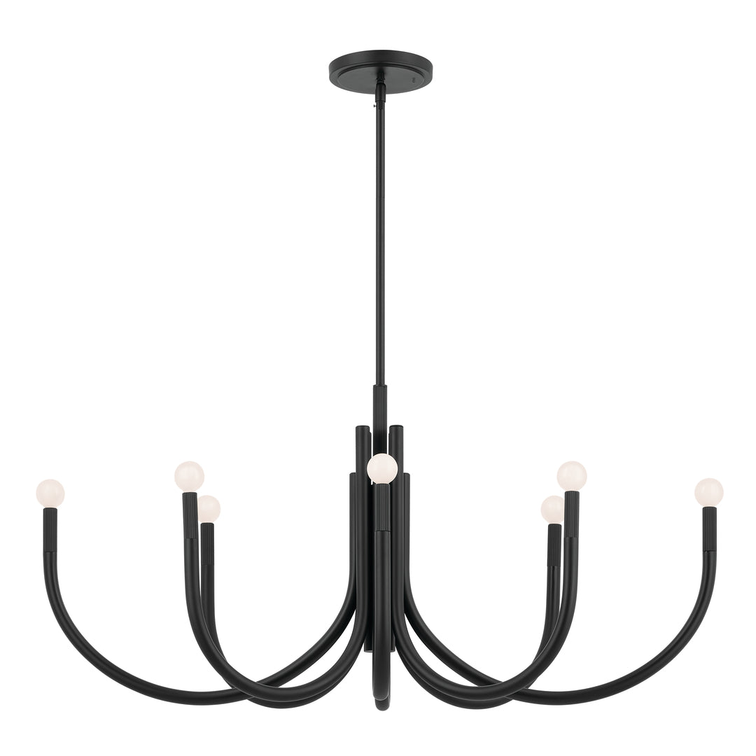 Over a rectangular table or long island, this eight-light oval dining chandelier runs parallel to the seating, keeping the center bright and faces easy to see. The elongated frame feels tailored to the layout, while the slight lift of each arm holds shades at an even height without blocking views across the room. Evenly placed arms keep place settings and serving boards well-lit from end to end. Subtle detailing stays precise so wood grains, fabrics, and decorative pieces remain clear. In long rooms, this fixture gives the table a defined presence and the whole setting a finished look.