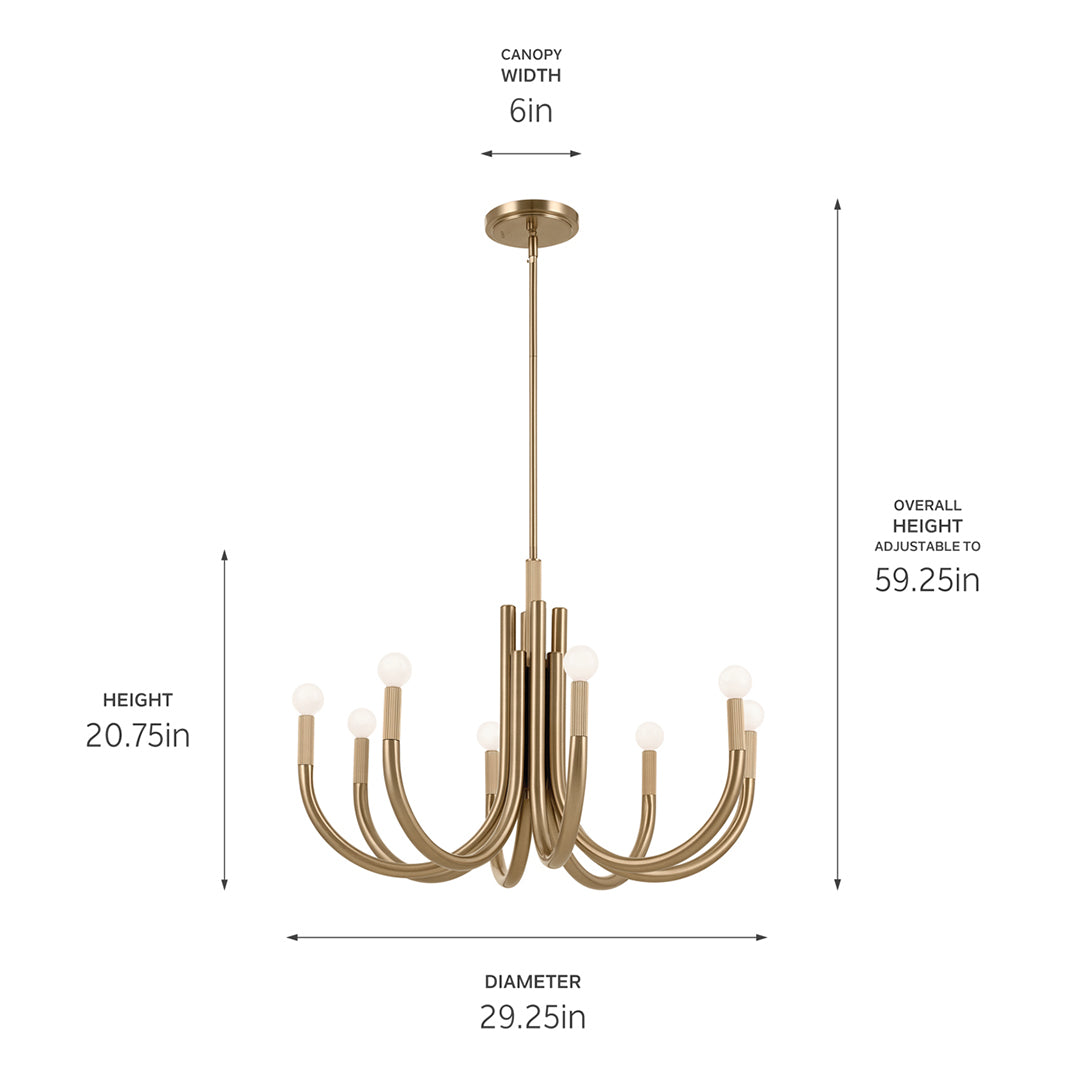 Bruno 29" Eight Lights Chandelier, Champagne Bronze