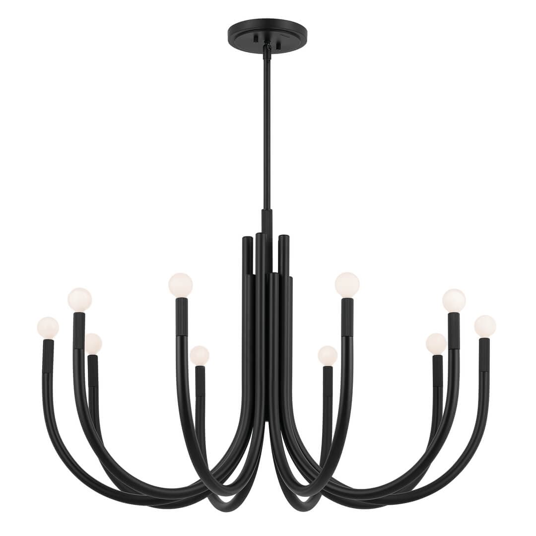 • A contemporary ten-light chandelier surrounds gatherings with balanced illumination