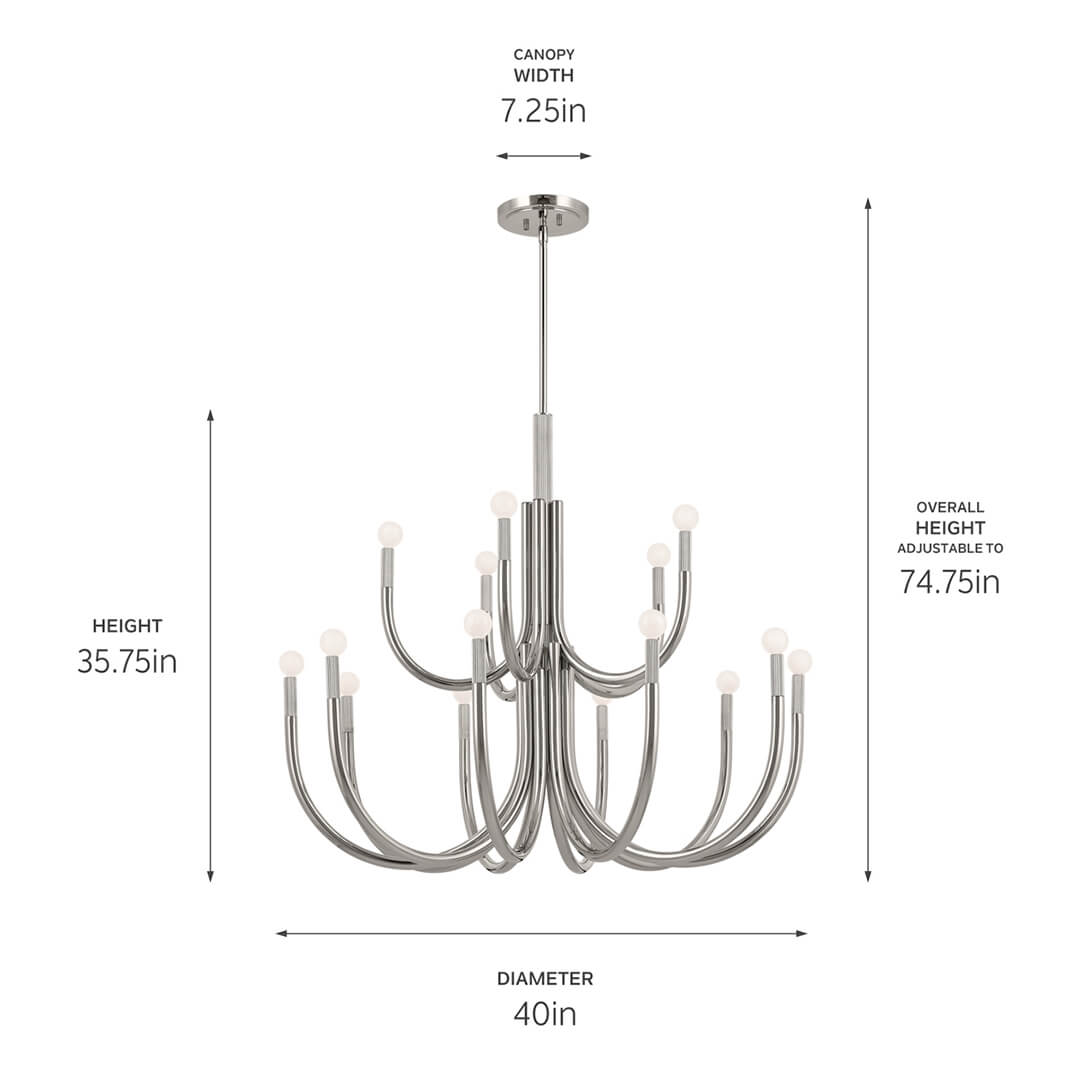 Bruno 40" Fifteen Lights Chandelier, Polished Nickel