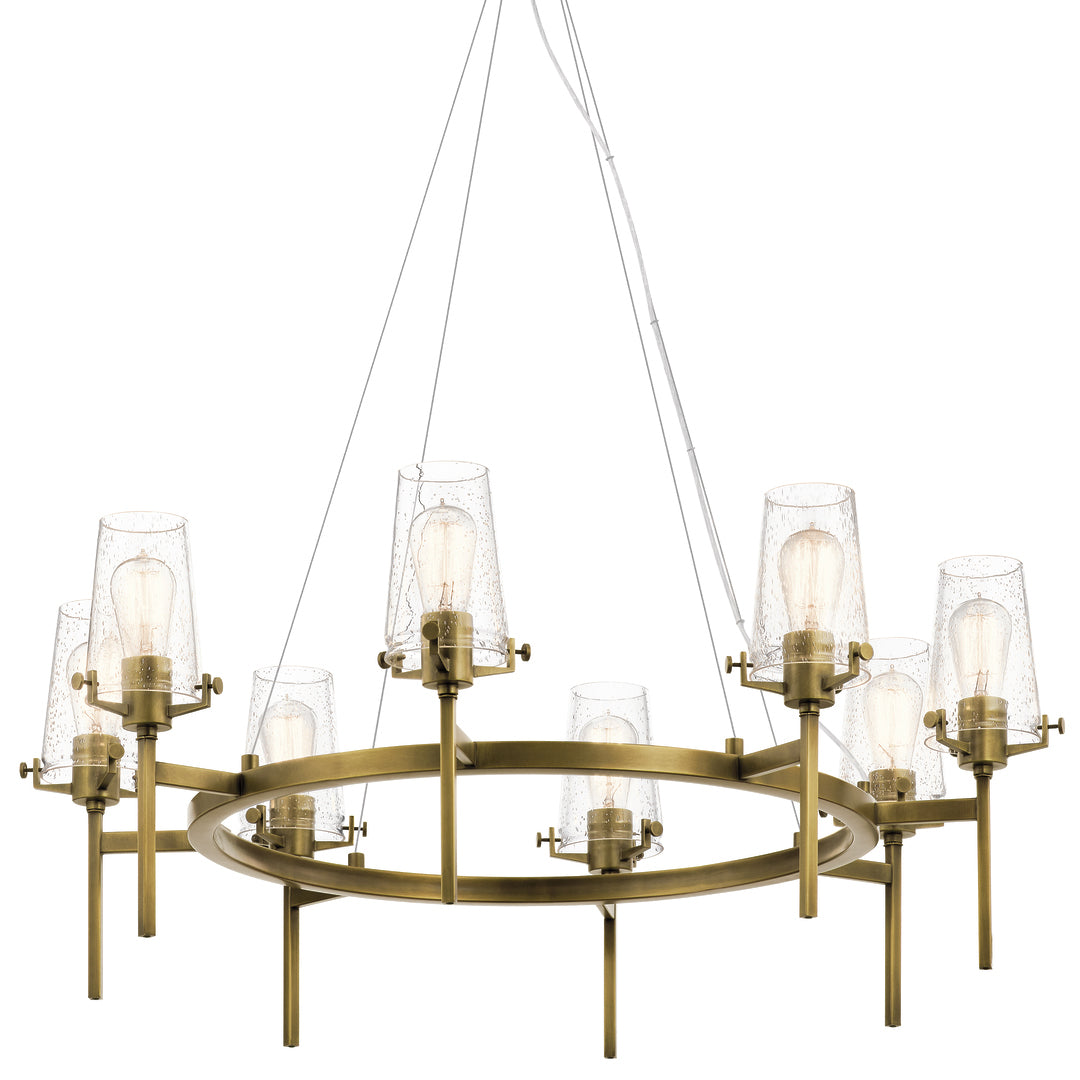 Buster 38" Eight Lights Chandelier, Natural Brass
