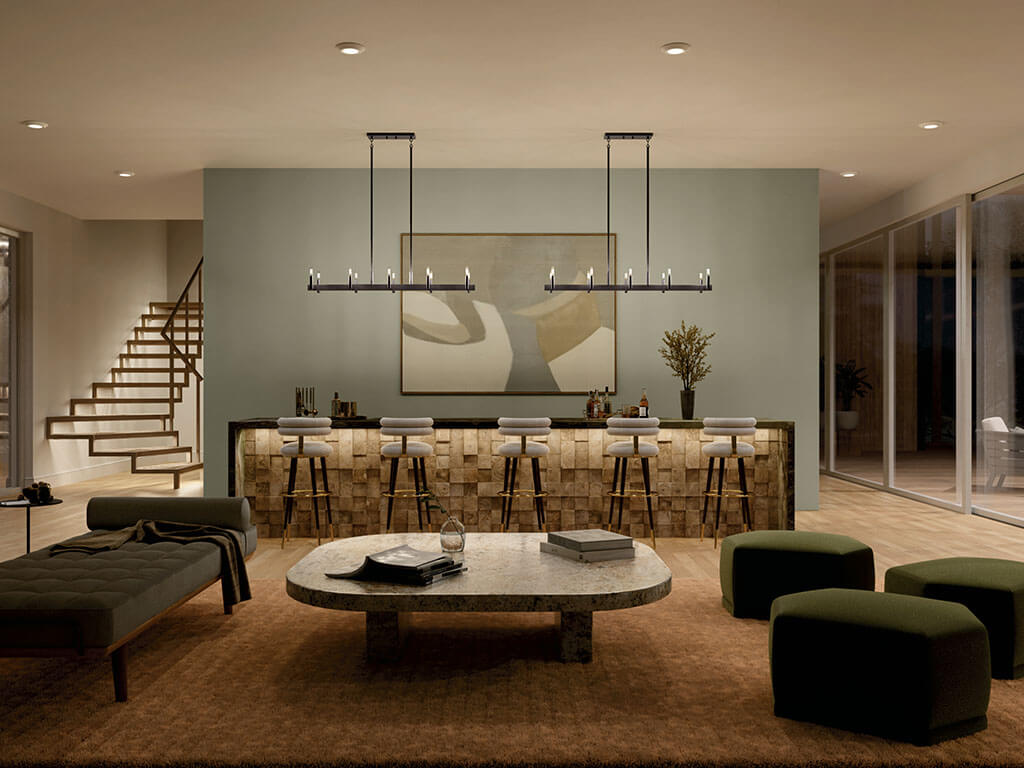 - Linear design is ideal for kitchen islands, game tables, and bars