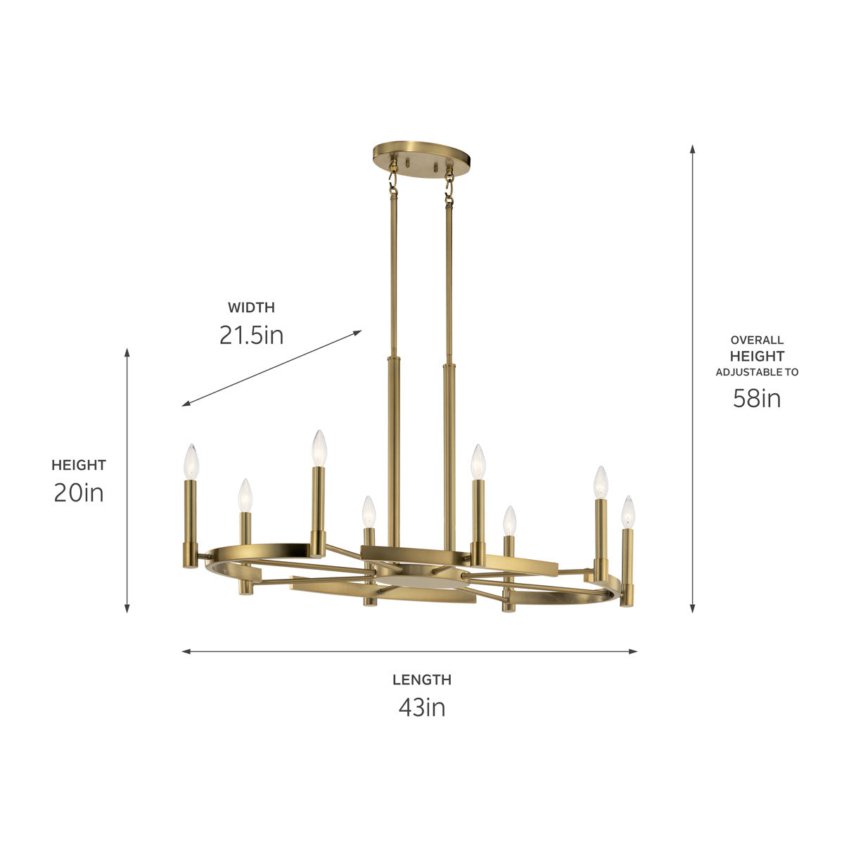 Durango 21" Eight Lights Chandelier, Brushed Natural Brass