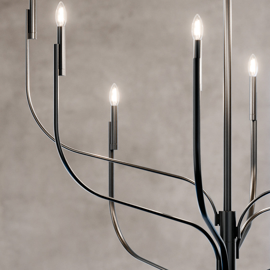 - A modern organic chandelier features graceful branching arms that add artistry over any space