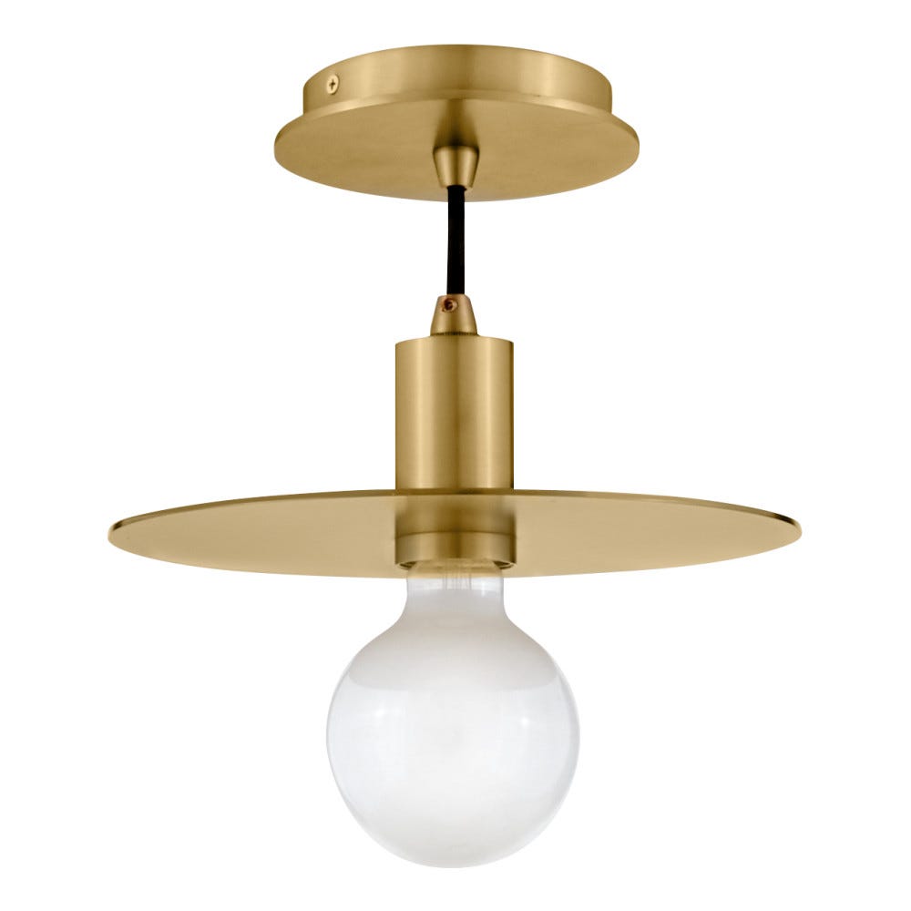 - Floating metal disk frames the bulb like a halo in the air