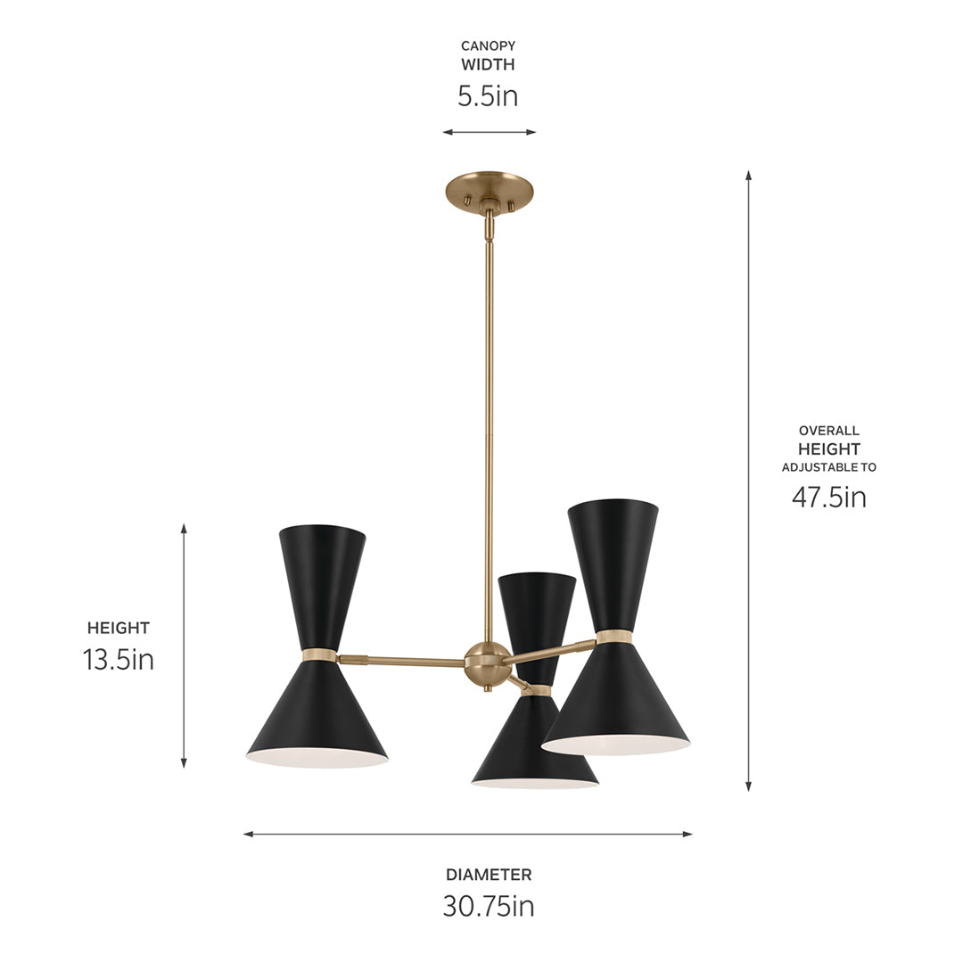Jester 31" Six Lights Chandelier, Champagne Bronze / Black
