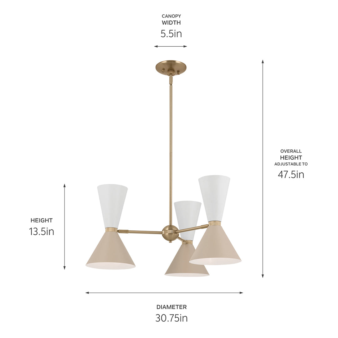 Jester 31" Six Lights Chandelier, Champagne Bronze / Greige and White