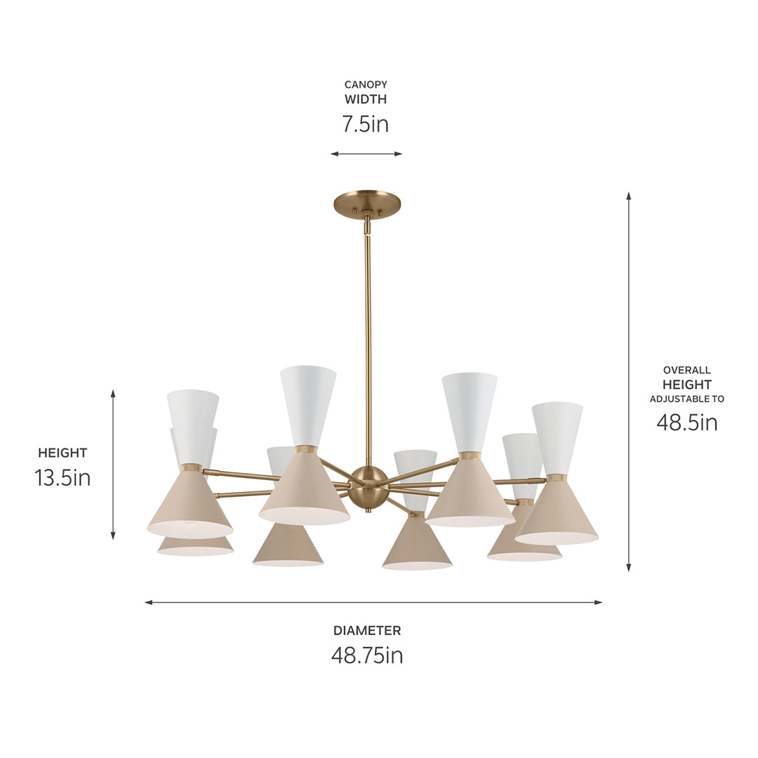 Jester 49" Sixteen Lights Chandelier, Champagne Bronze / Greige and White