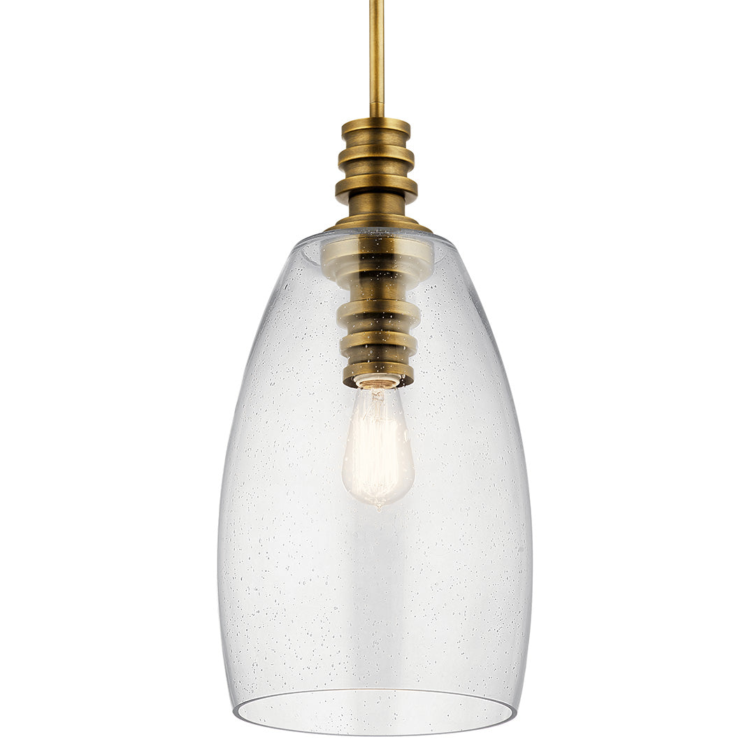 Capture timeless aesthetics with the traditional spindle detail and gorgeous seeded glass featured on this one-light pendant. A statement-making fixture for kitchen, living room, and beyond, it delivers bright, even illumination and is dimmable for custom ambiance. The rich textural effect of the spindle socket and head lends subtle but impactful style to enhance surrounding decor.