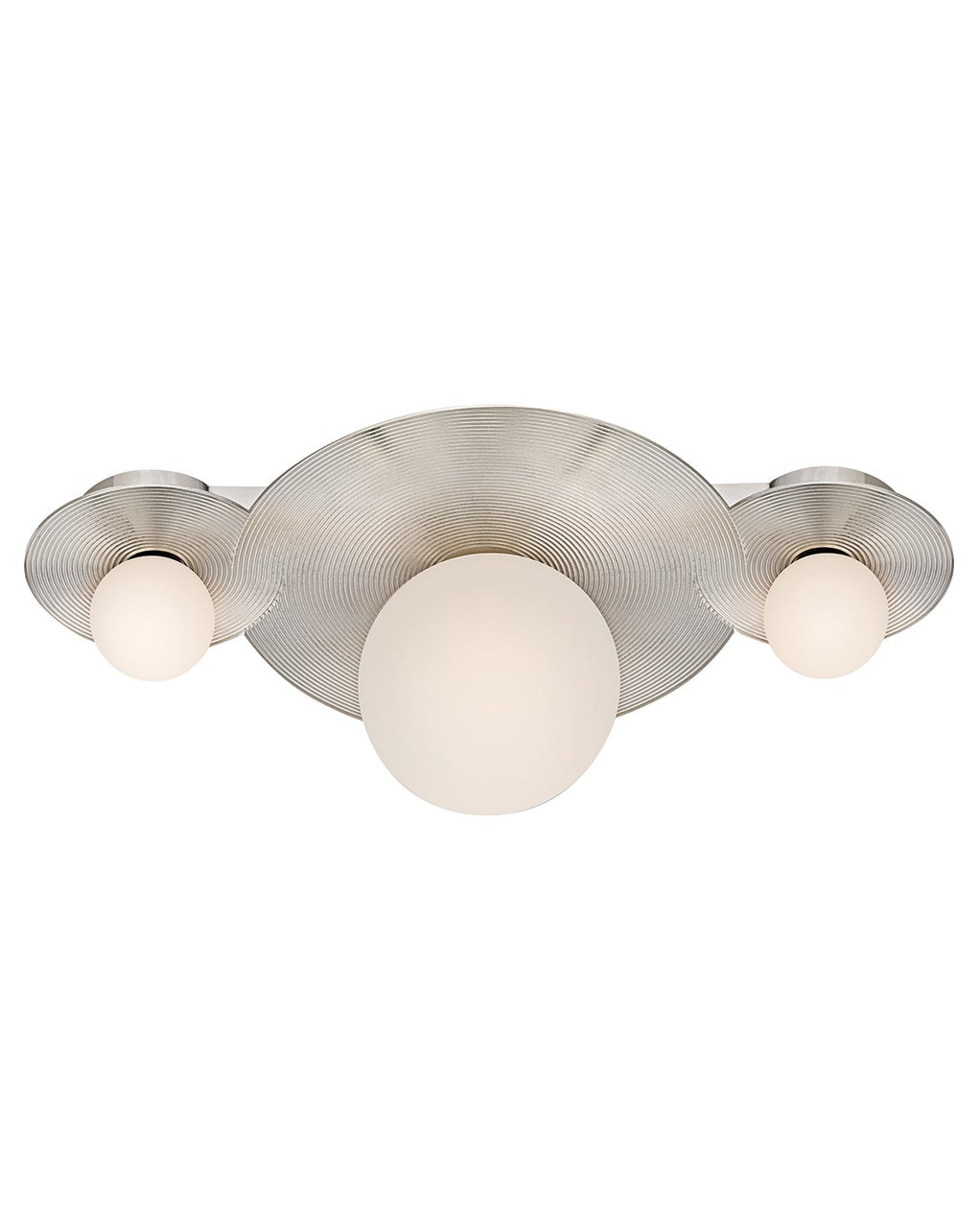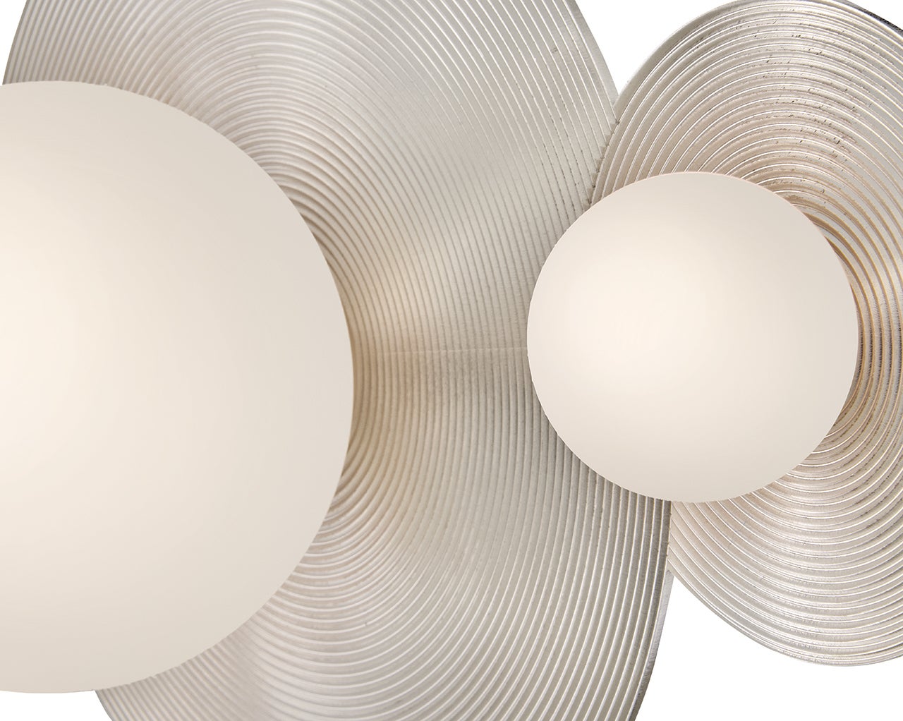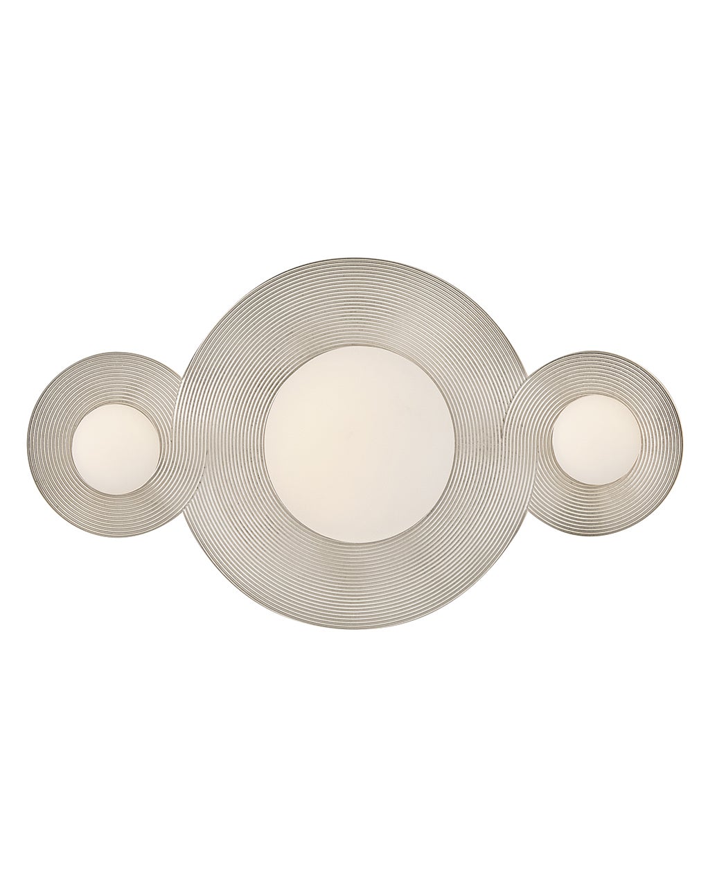 Evoking the concepts of eternity and limitlessness, Rhea’s continuously flowing loops of refined metal create a ribbed texture along its gracefully curved backplate. Dimmable, integrated LED lamping brings comfortable energy into any bathroom or small interior space. Rhea can be installed vertically, horizontally, or even as a flush mount on a ceiling.