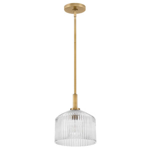 Taton 9" One Light Small Pendant, Lacquered Brass / Clear Glass