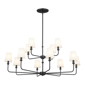Mariella 43" 12 Light Chandelier, Black / Fabric Bell Shade