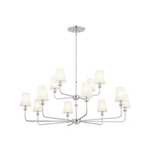 Mariella 43" 12 Light Chandelier, Polished Nickel / Fabric Bell Shade