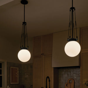 Ansel 18" One Light Pendant, Opal Glass / Black
