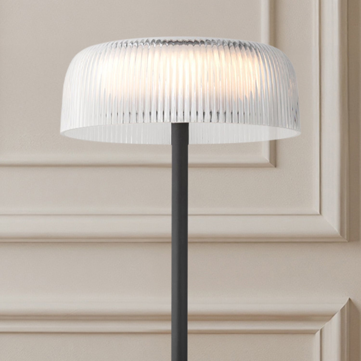 - Ribbed acrylic shade creates a sparkling, crystal-like aesthetic for a touch of sophistication