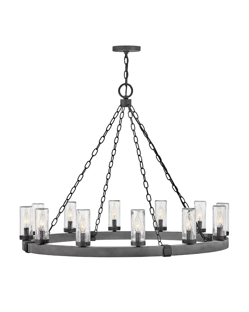 Cipher 38" Twelve Lights Large Single Tier Chandelier, Aged Zinc