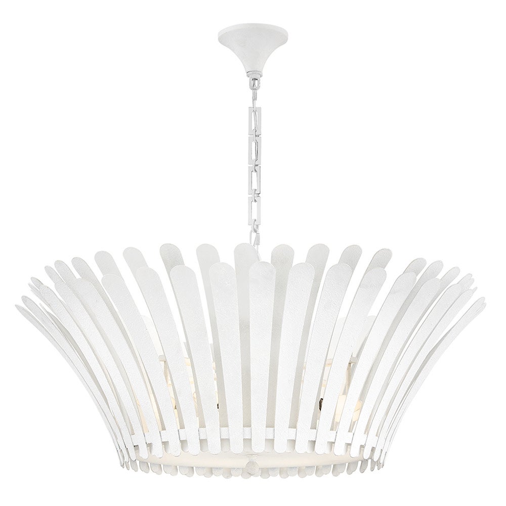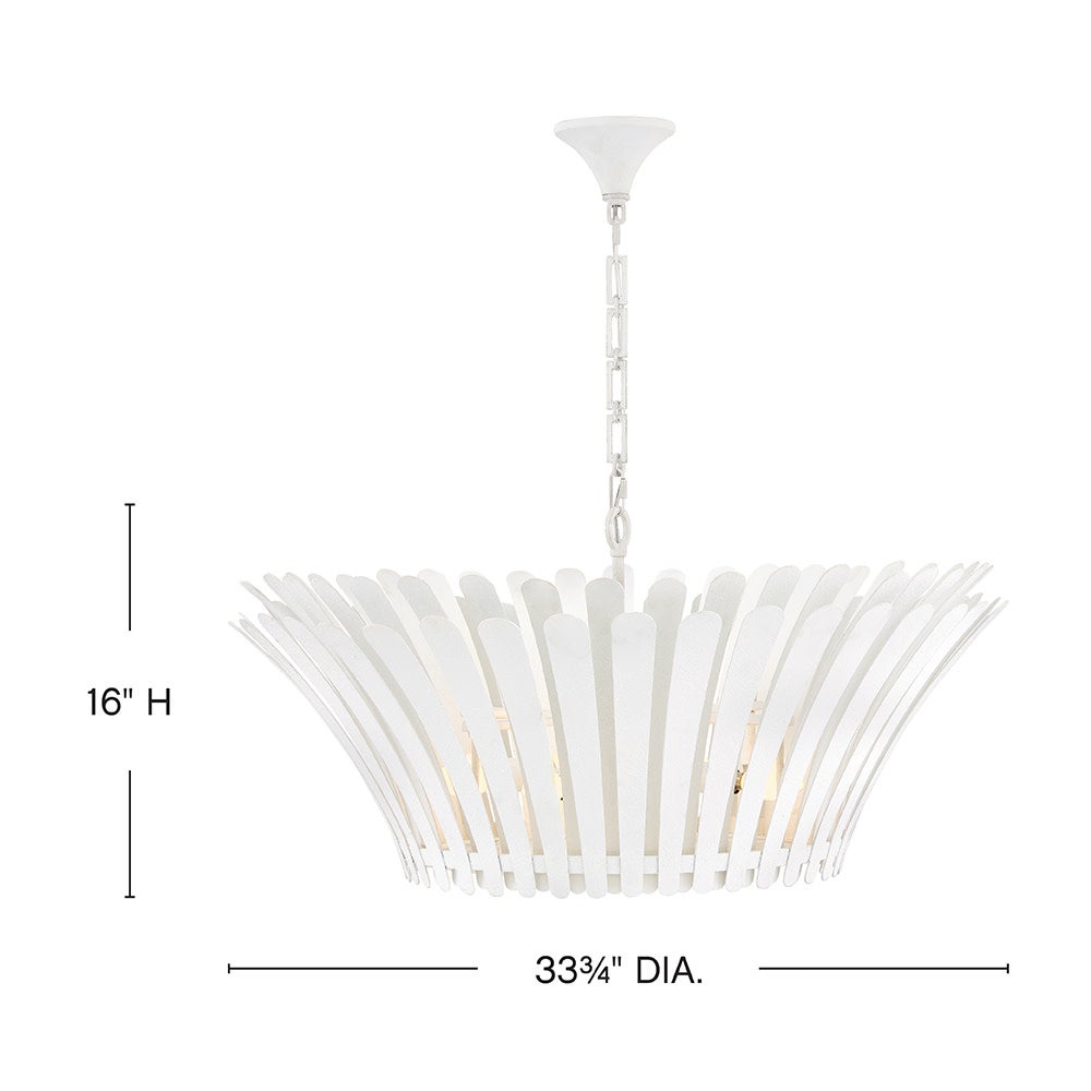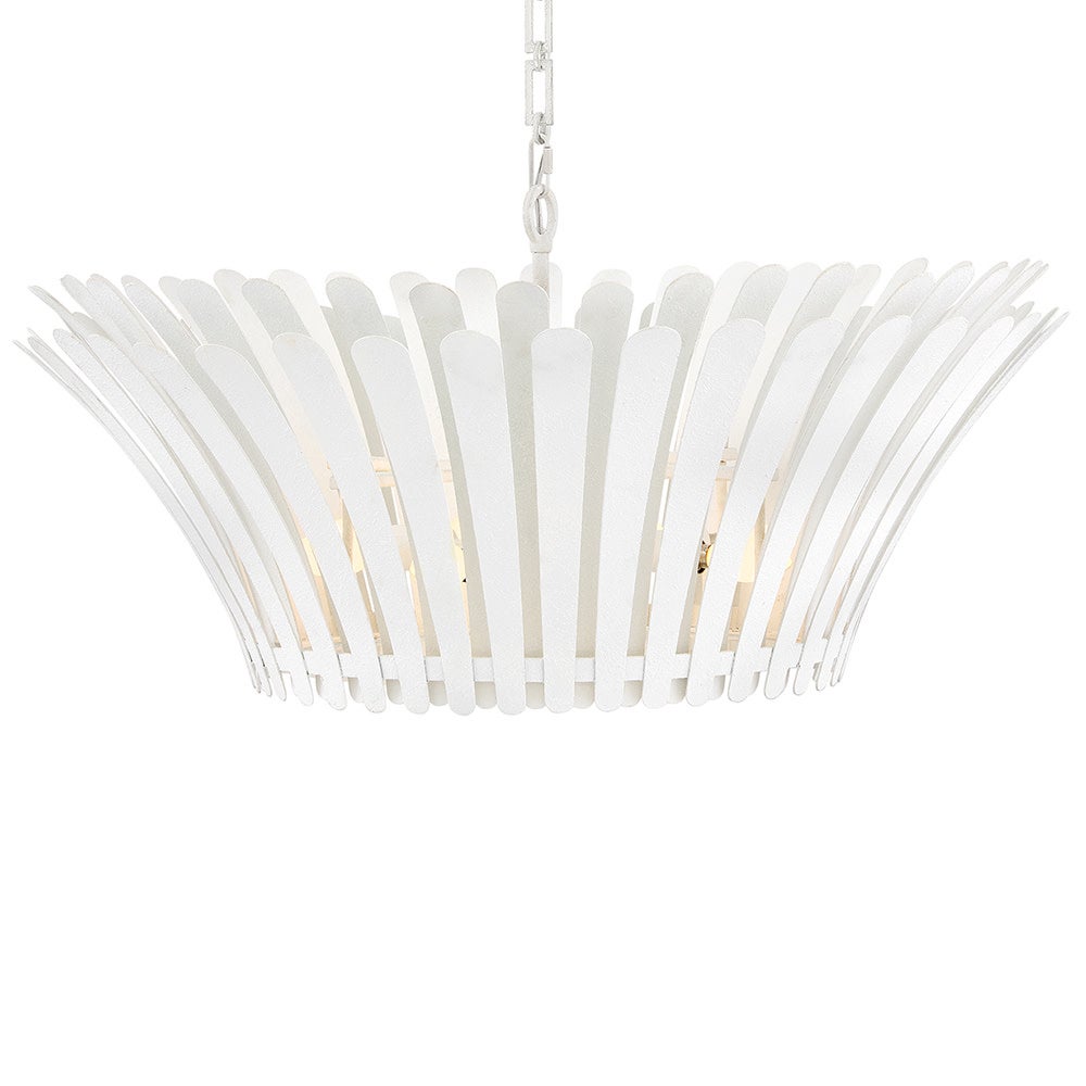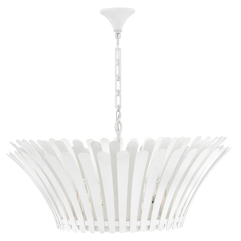 Suited to both flat and sloped ceilings, this charming chandelier sets the tone with its botanical elegance. Flared fronds resemble tropical foliage, while a refined finish sets the mood in your living or dining room. This fixture offers soft, diffuse illumination with an etched white glass drum diffuser. It installs on flat and sloped ceilings for maximum versatility.