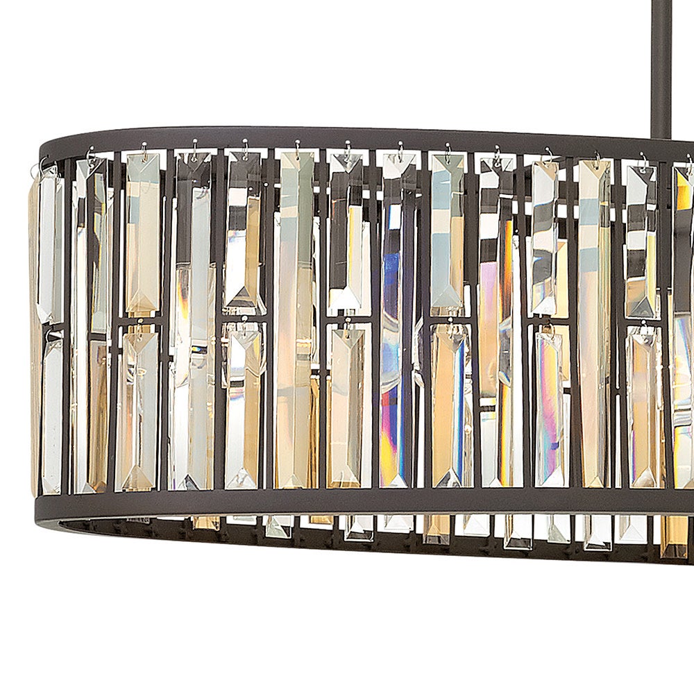 Gemma is a contemporary chandelier collection with stunning rectangular prisms of amber pearl and clear crystal set within a frame of Vintage Bronze or Silver Leaf to create a seamless sparkling, jewelry-like effect.