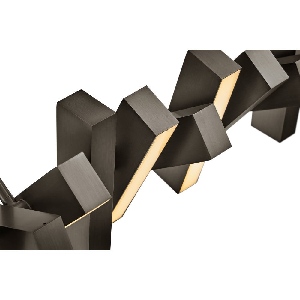 Stitch strikes a pose with an innovative design, offering bountiful illumination from articulating LED panels. This dynamic linear chandelier is a modern sculptural statement available in Black Oxide or Lacquered Brass finishes.