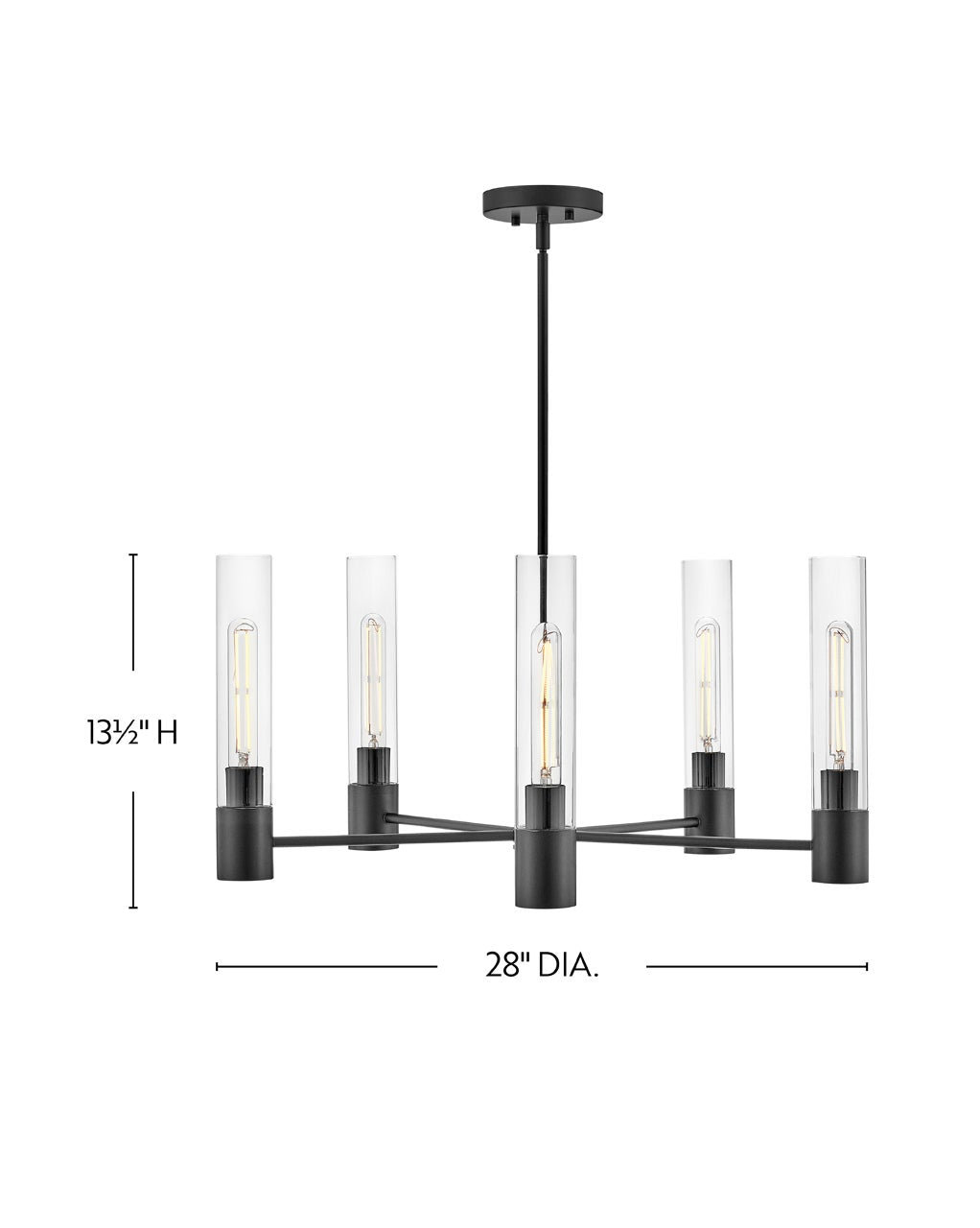 Berie 28" Five Lights Medium Single Tier Chandelier, Black