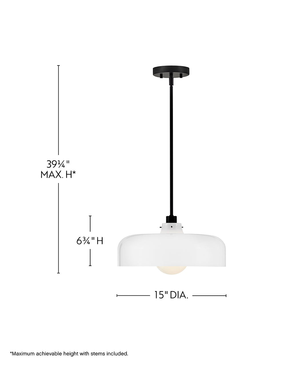 Alar 15" One Light Medium Pendant, Black / Cased Opal Glass
