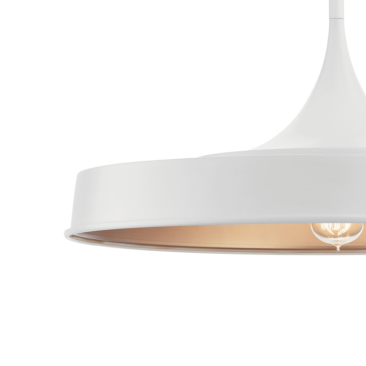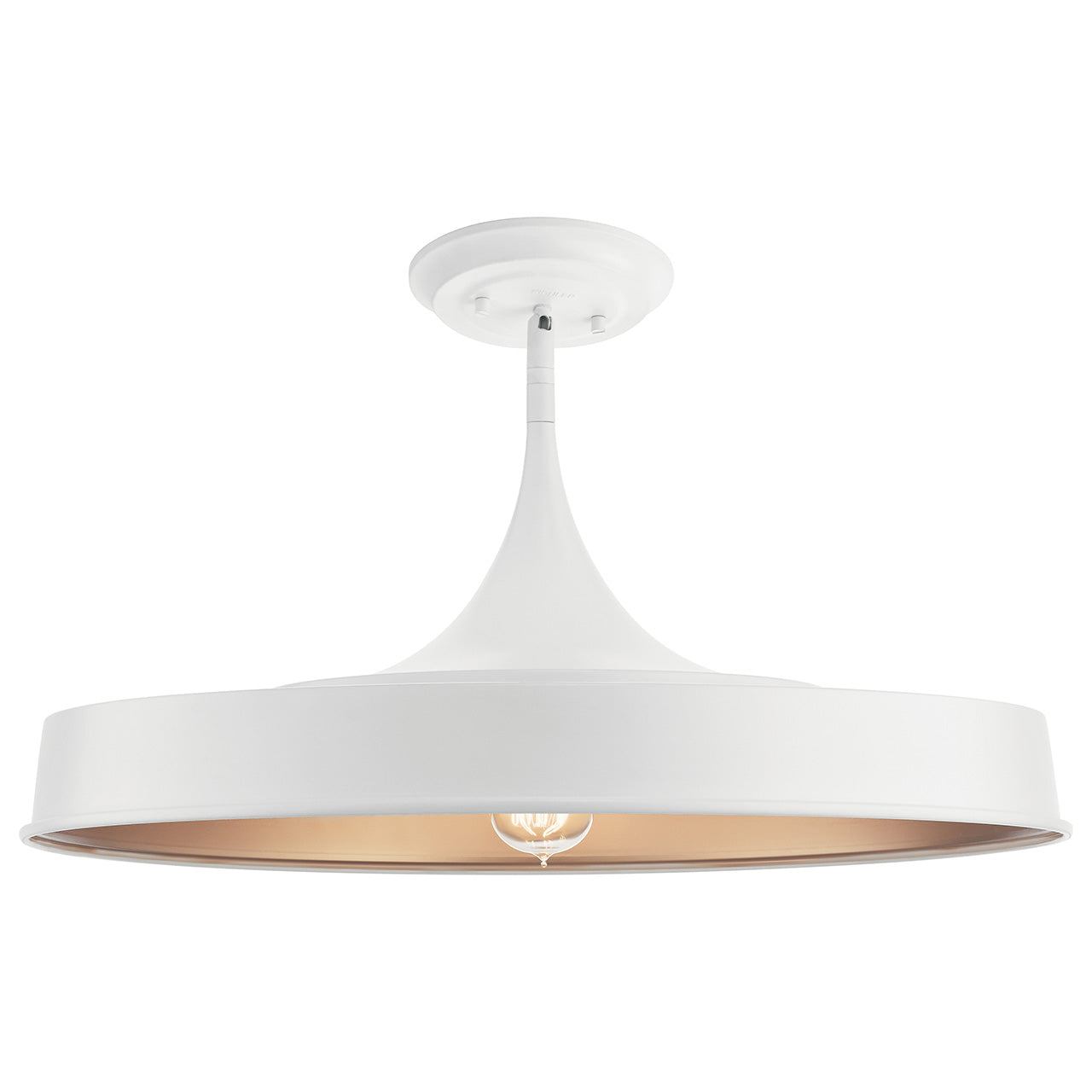 A pan-shaped shade gives this pendant a sleek, utilitarian feel, while the warm interior finish turns light into a welcoming glow. Perfect over a kitchen table or island, it feels current but rooted in workshop heritage. The fixture converts to semi-flush when needed, making it adaptable for rooms with lower ceilings. Aim it over task areas for clarity or over seating for long conversations.