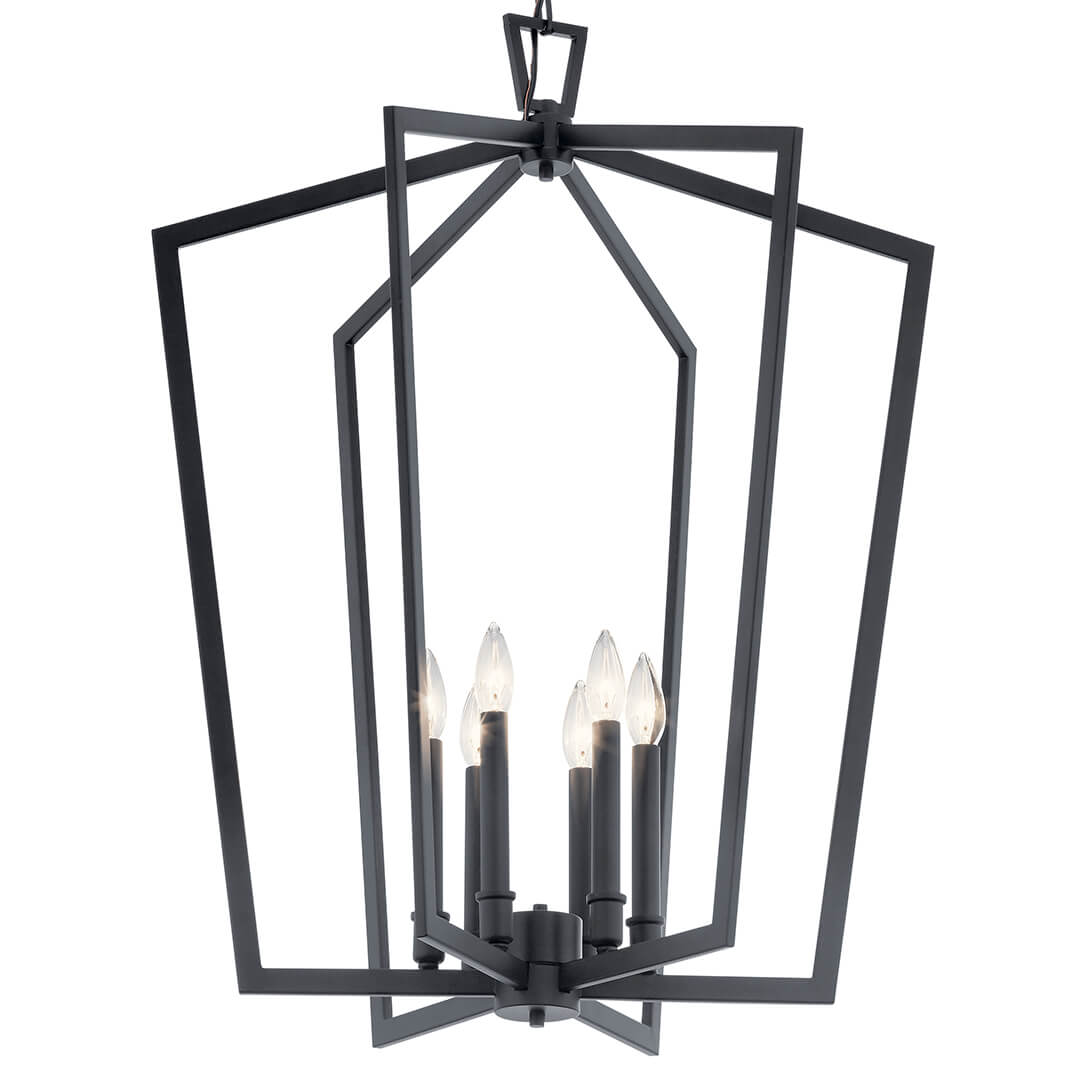 Add geometric interest and depth over your entry or dining room with a transitional six-light chandelier. Crafted with an open cage silhouette that utilizes intersection pentagons to create structure, this fixture is a chic addition with timeless flair, perfect for a wide range of spaces and design styles. It's the perfect upgrade for a refined but approachable dining room, offering bright, even illumination.