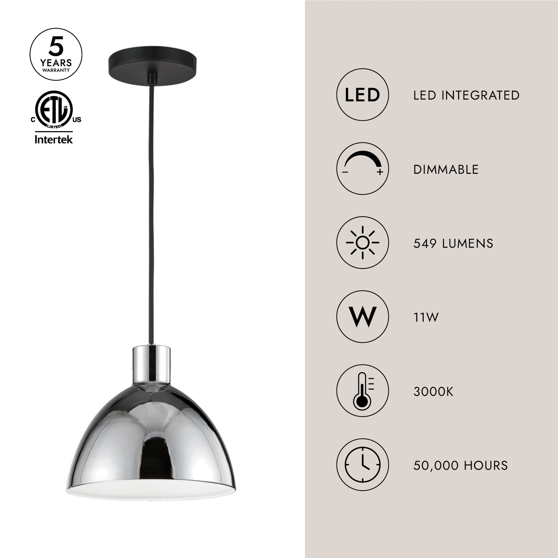 Lunara 9" LED Pendant Light, Brushed Nickel