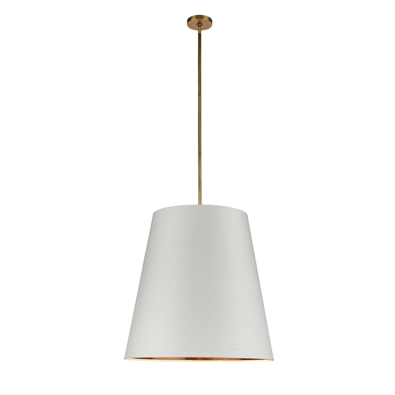 Madrigal 25" Three-Light Pendant, Vintage Brass/White Linen With Gold Parchment