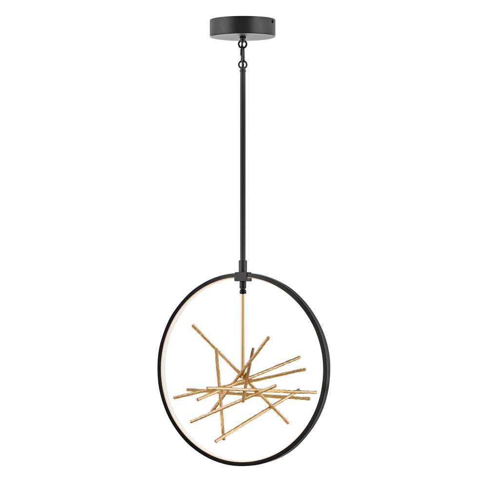 The breathtaking design of Styx fuses rich glamour with modern styling for an enthralling and dynamic silhouette with unexpected elements. An integrated LED open frame is fully dimmable, composed of clean angles in a chic Black finish. The frame illuminates textured metal branches in Gilded Gold, mingling organic and contemporary elements.