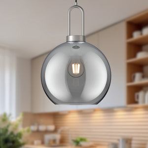 Emi 10" Pendant Light, Brushed Nickel/Smoked Solid Glass
