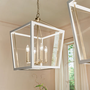 Townsend 22" Four Lights Pendant, Clear Glass / Champagne Bronze and White