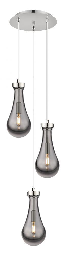 Nouvelle Drop 17" Three Lights Multi Pendant, Polished Nickel