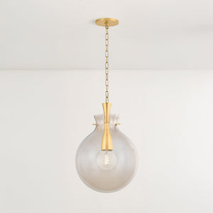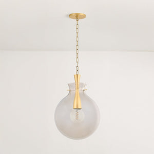 Vance 14" One Light Pendant, Clear Seeded Glass / Natural Brass