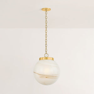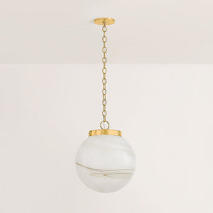 Lyan 18" One Light Pendant, Patina Brass / Slate Blue