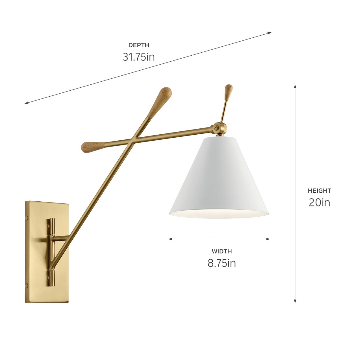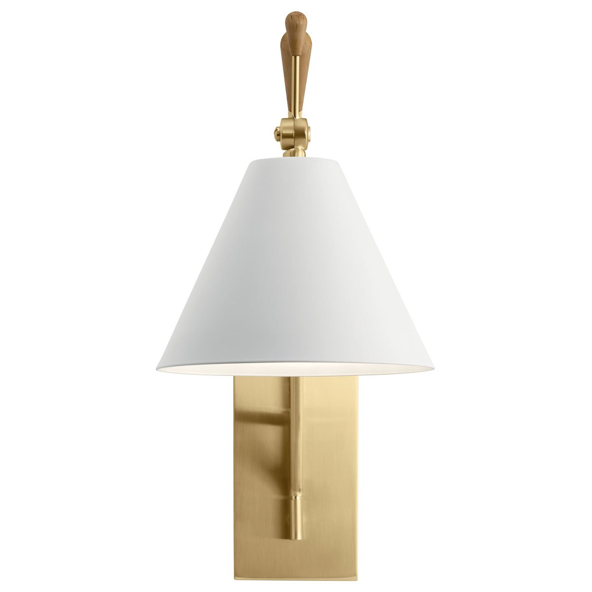 Harlan 9" One Light Wall Sconce, White Shade / Champagne Gold and Natural Maple