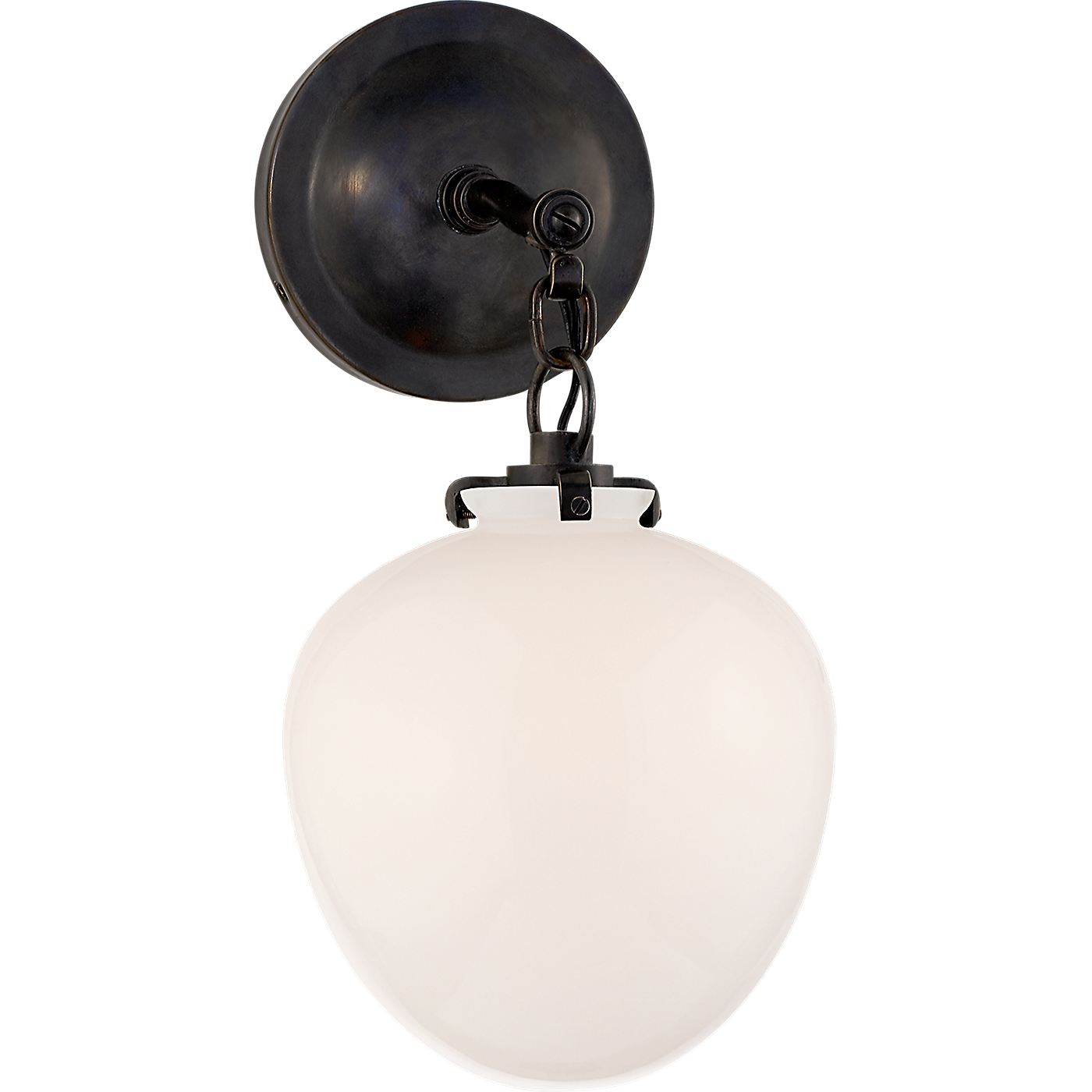 Katie 6" One Light Small Acorn Sconce, Bronze / White Glass