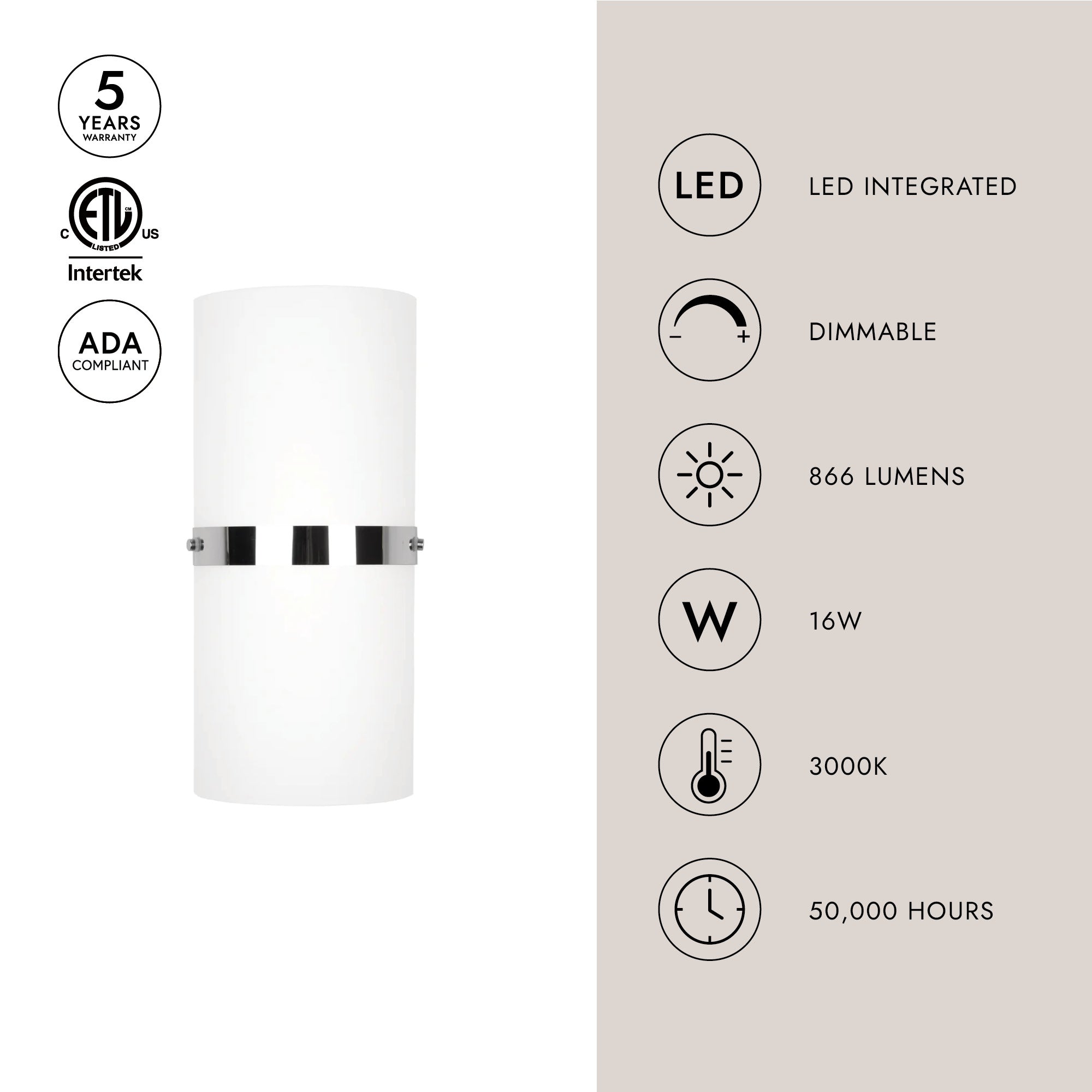 • A contemporary LED wall sconce delivers soft ambient light with a tailored detail