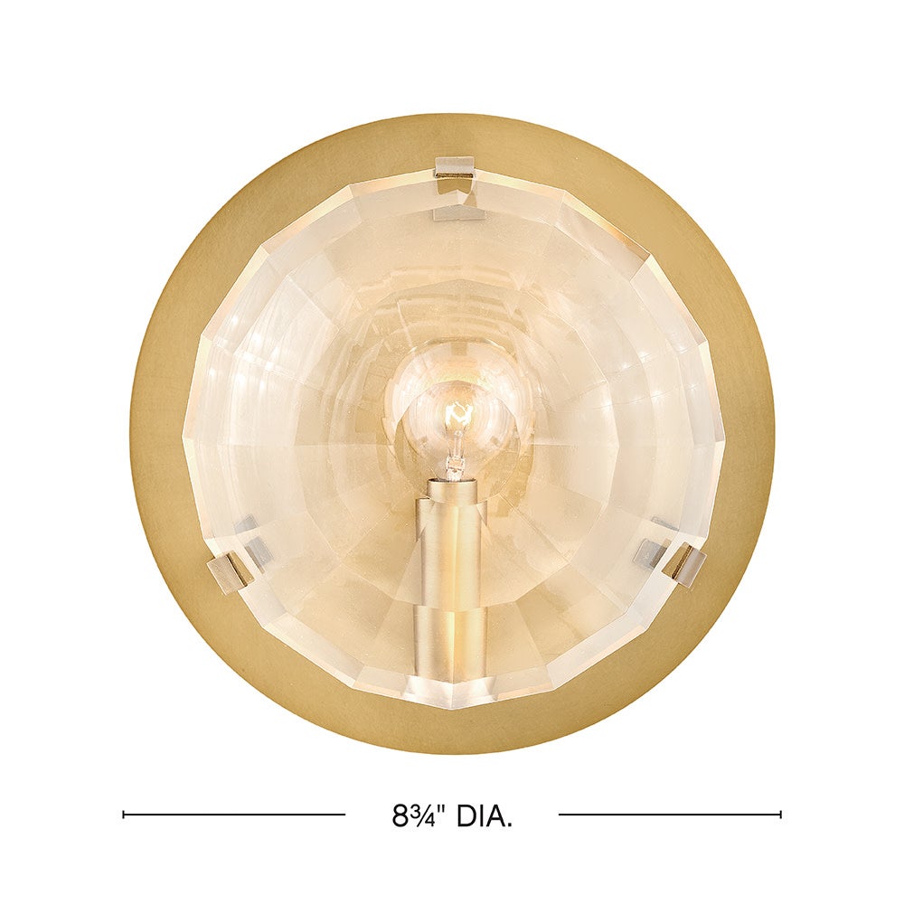 Nala is striking from any angle with a traditional silhouette and elegant eye-catching details. Multi-faceted, optic-crystal lenses surround the circular frame and attach with cast clips in Heritage Brass and Black finishes.