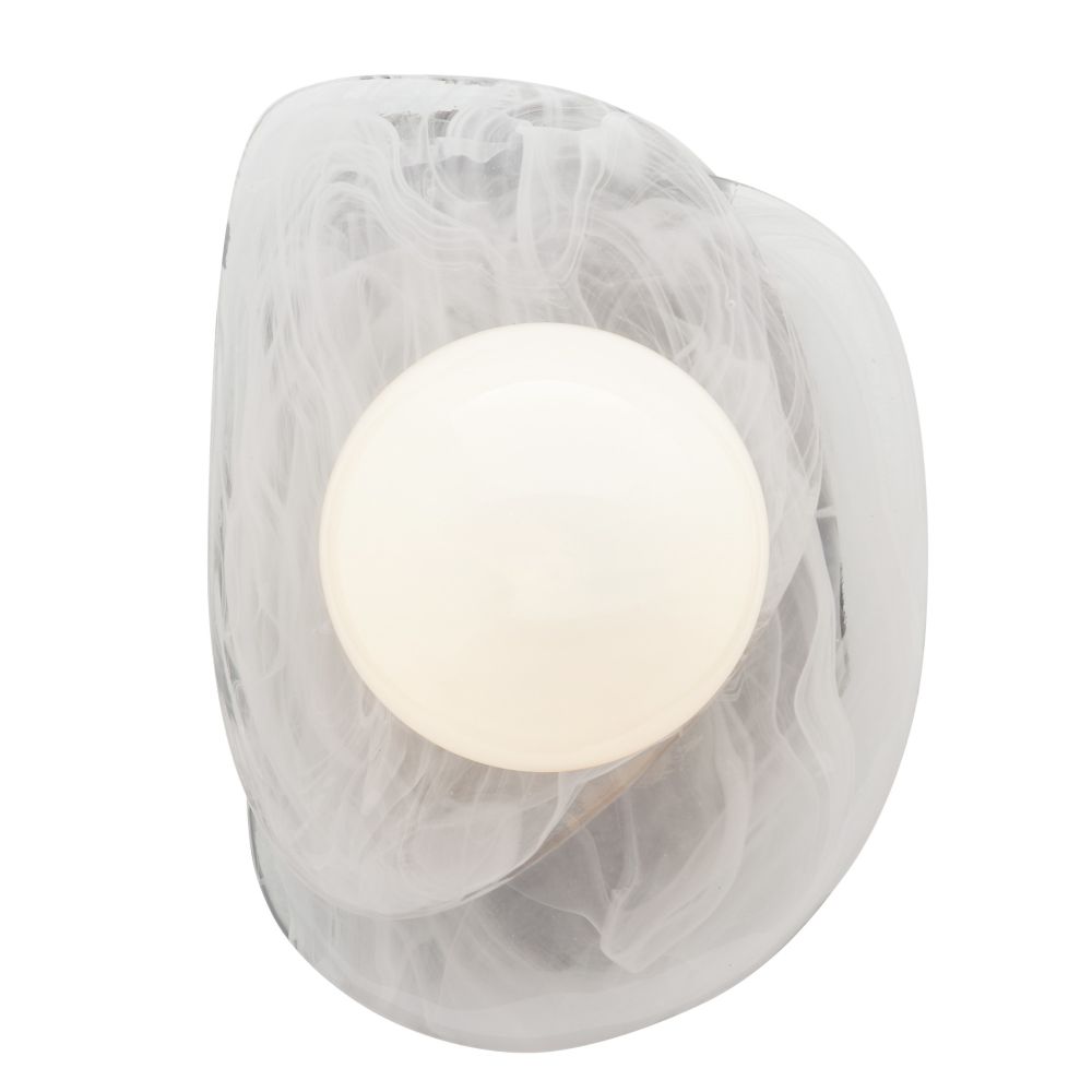 Introduce refined ambiance and soft illumination with the pearl-like aesthetics of this modern coastal wall sconce. Built for bold, artistic style, it boasts a gorgeous orb of hand-blown swirl glass that diffuses light to cast a soft, inviting glow across your living space. Its oyster shell-inspired backplate adds depth and dimensionality, perfect for style that enhances without overwhelming.
