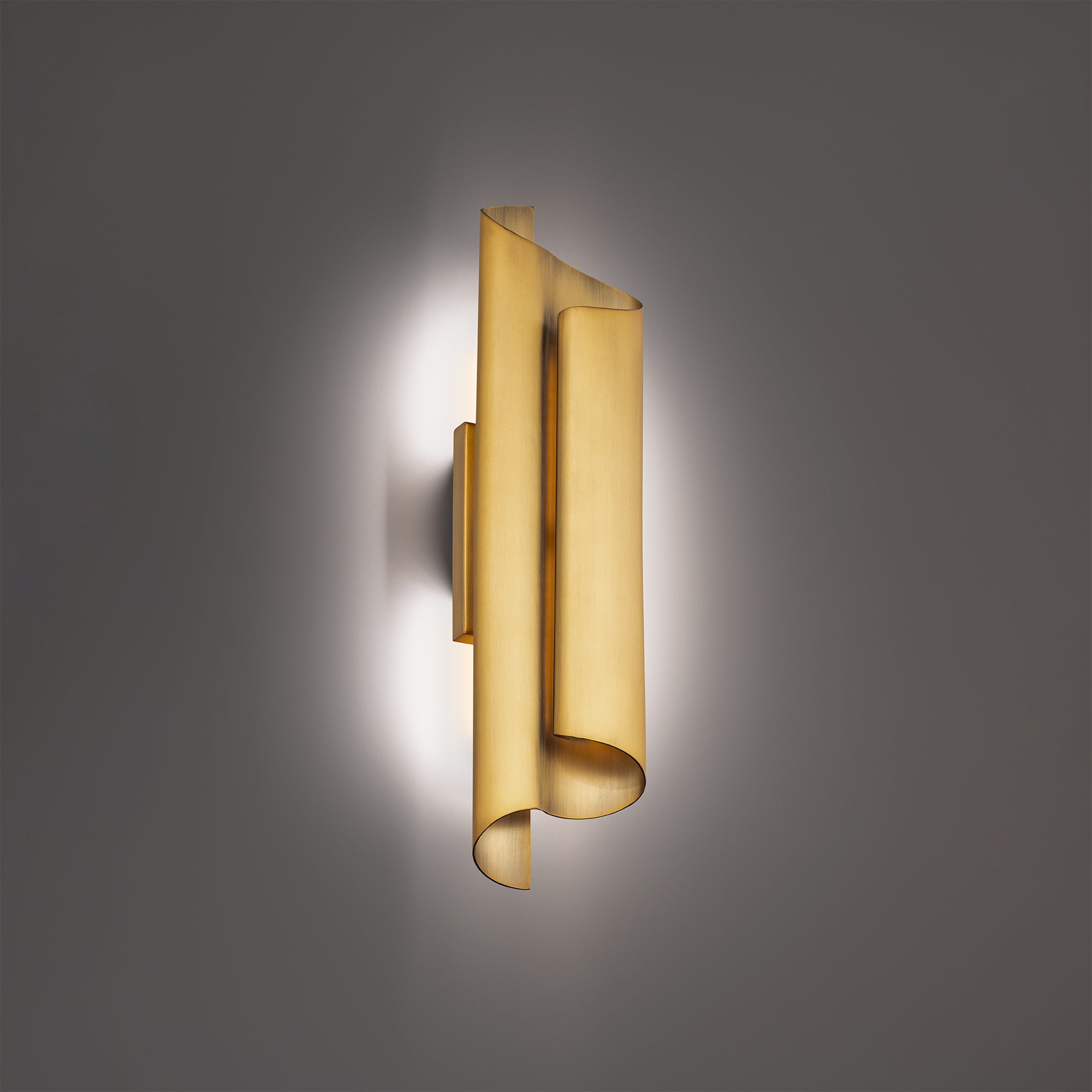 Diagonal cuts and gorgeous texturing create a bold style for this modern wall sconce. Designed for maximum style impact, it's inspired by a ballerina captured mid-spin, offering a fresh, refined presence and sculptural allure. The LED fixture is dimmable and offers color temperature select ability for maximum customization in your space. Its aged brass finish is a timeless choice that lends richness, warmth, and depth to surrounding decor.