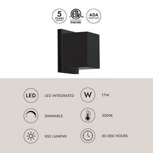 Rook 5" LED Indoor/Outdoor Wall Sconce, Black