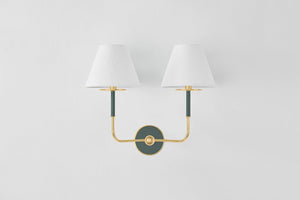 Lumion 19" Two Lights Wall Sconce, Aged Brass / Soft Studio Green