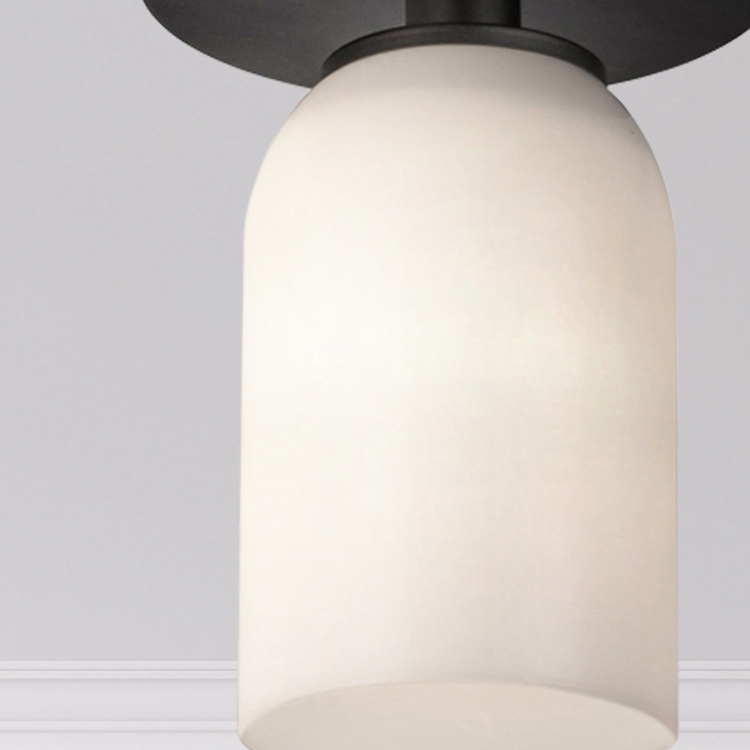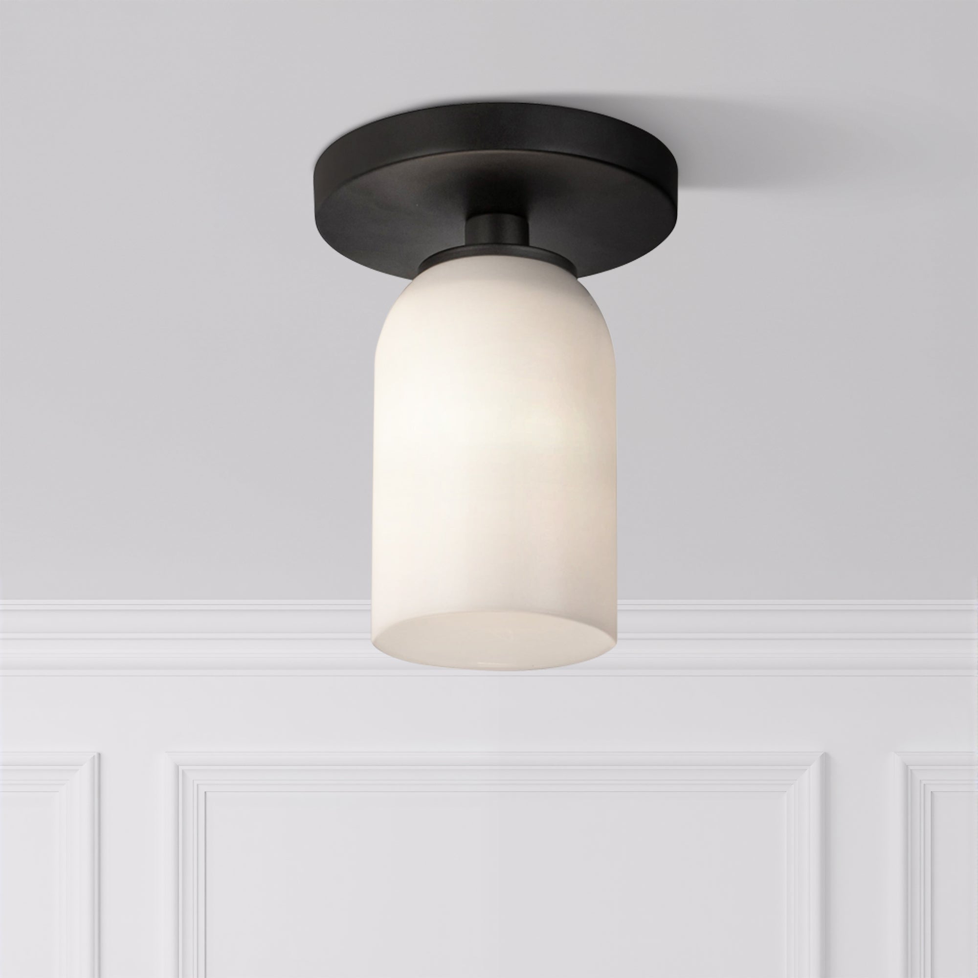 Solenne 4" Semi-Flush Ceiling Light, Black/Glossy Opal Glass