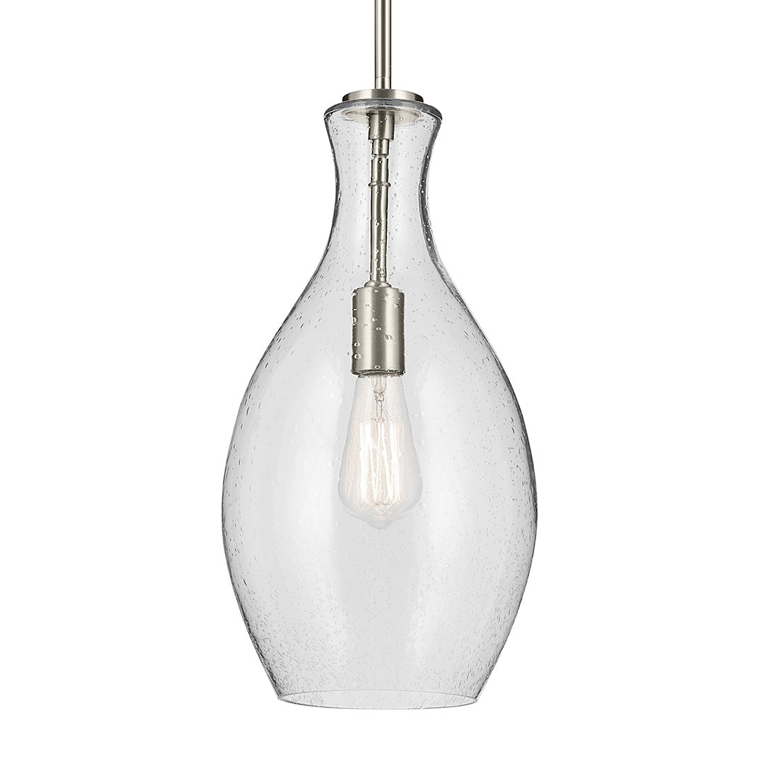 Vance 9" One Light Pendant, Clear Seeded Glass / Brushed Nickel
