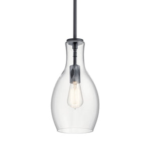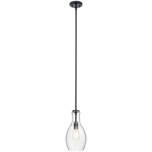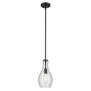 Vance 7" One Light Pendant, Clear Seeded Glass / Black