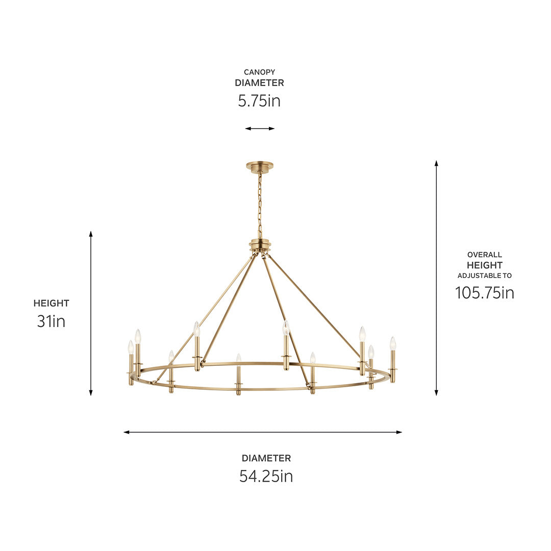 Barron 54" Ten Lights Chandelier, Champagne Bronze