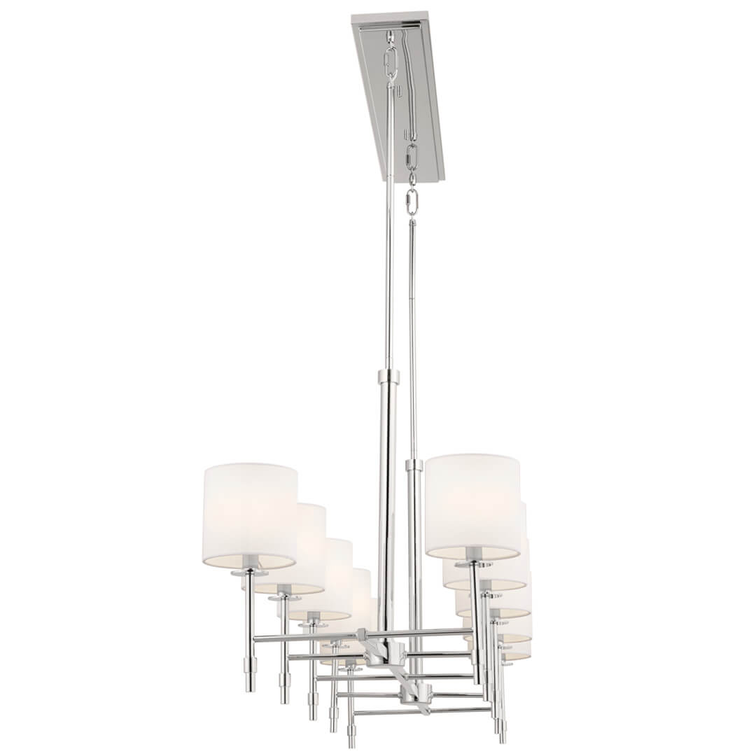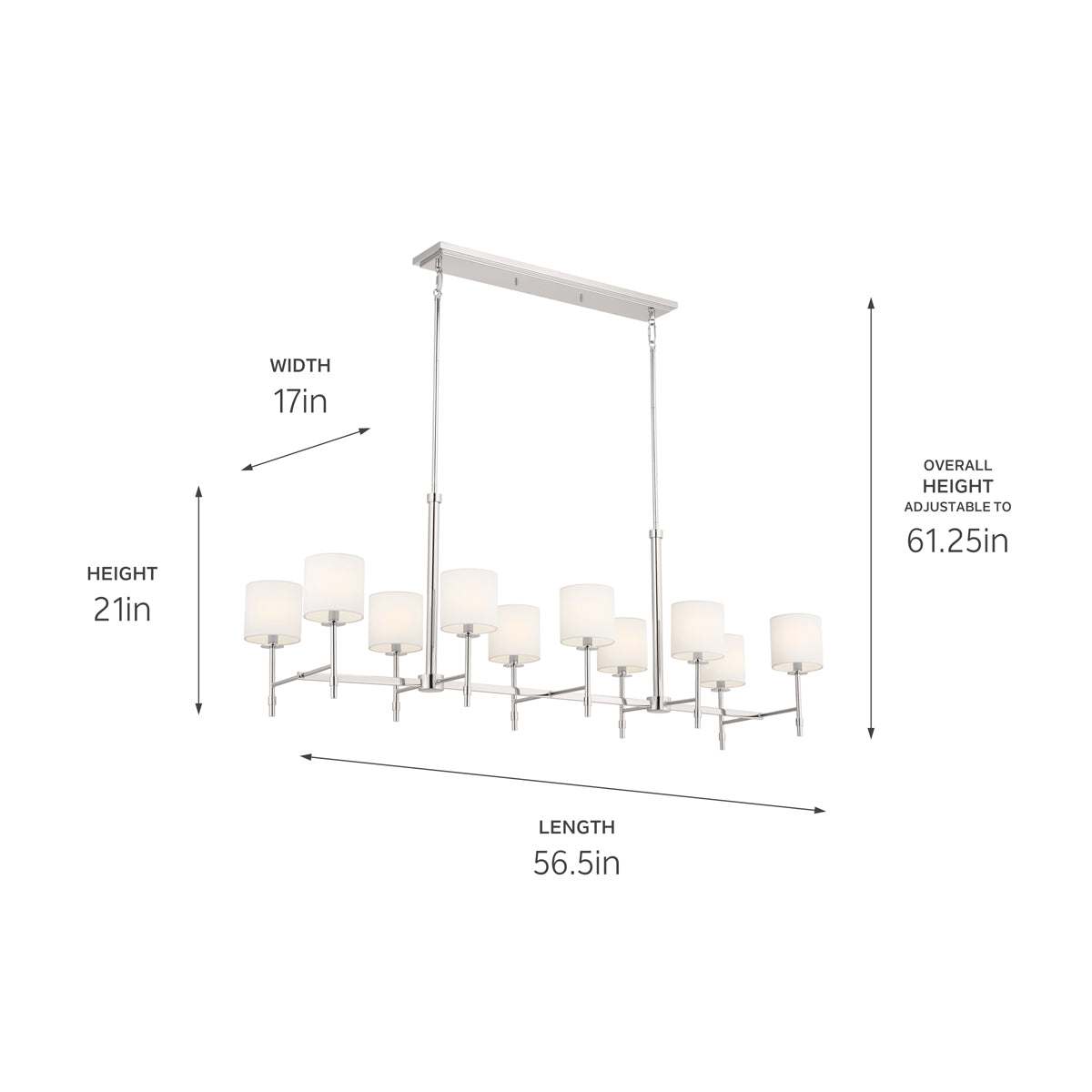 Janie 17" Ten Lights Linear Chandelier, Polished Nickel / Fabric Drum Shade